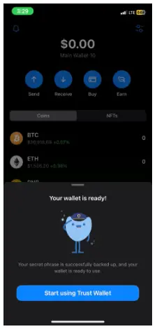 Tener un monedero (wallet) compatible (Trust Wallet, MetaMask, etc.)